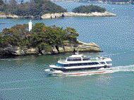 「丸文松島汽船」は塩釜港と松島を結ぶコースを運航。美しい景色をのんびり見渡せる。