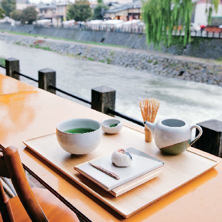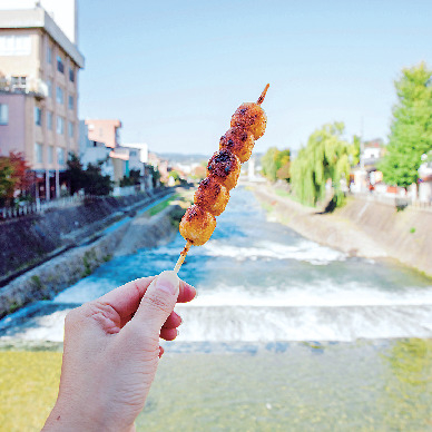 高山市街地を流れる宮川周辺は、市民にも観光客にも憩いの場所。鍛冶橋たもとの店でおだんごを買って、ひと休み♪ かじ橋こみち
