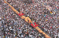 まつり2日目に久茂地交差点で行なわれる大綱挽がメインイベント。綱は全長200mで重さは40t。