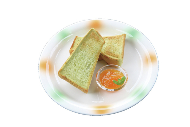 びわ葉トースト(530円) 健康にいいと注目される、ビワの葉の粉末入り