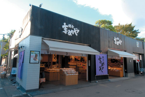 黄色いのれんを掲げた店舗。ほのかに甘い香りが漂う
