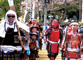 源義経ゆかりの満福寺から甲冑姿のパレードが出て街中を闊歩する。