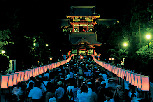 江の島内や江の島サムエル・コッキング苑が1000基の灯籠でライトアップされ、幻想的な雰囲気になる。