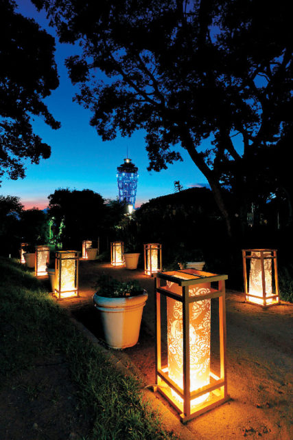 江の島の晩秋の風物詩。約7000基のキャンドルのやわらかな灯りが、苑内をロマンティックに彩る。