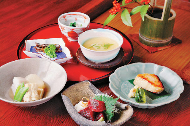 - 昼懐石=4200円(うめ)・6000円(さくら)・9600円(つばき)/夜懐石=6600円(もみじ)・10560円(いちょう)・13200円(かつら)/(夜の懐石はサービス料込)