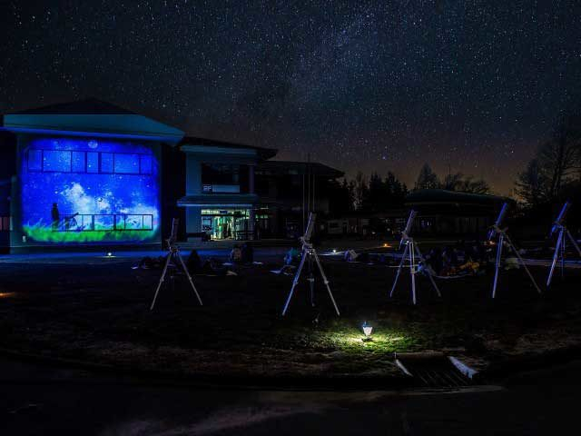 星空観賞エリアでは寝転んだり座ったり自由なスタイルで。消灯後に星空解説も始まる。防寒着は用意しよう。