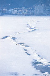 自然現象のため出現の有無は不確定。「御神渡り」とは、全面氷結した湖面が盛り上がって筋ができたもの。
