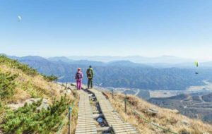 姫川が流れる白馬村を眼下に雄大な風景を望める