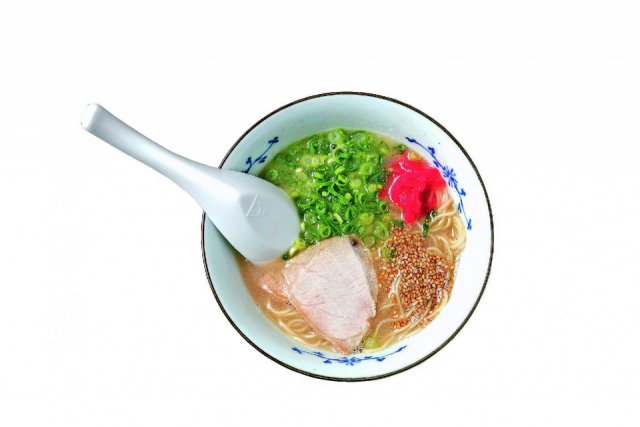 ゲンコツ、背骨、鶏ガラをあわせたとんこつスープに、ごま油やにんにく、ポン酢、バターなどを加えたマイルドな味
