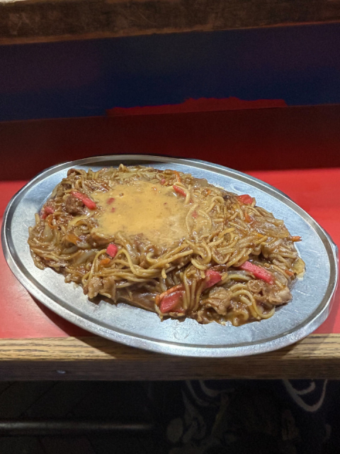 目玉焼きがとろ~り。名物の焼きラーメンで締め!