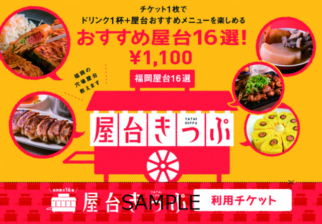 屋台初心者におすすめなのが、屋台をおトクに安心して利用できる「福岡屋台きっぷ」。チケットと引き換えに、ドリンクとおすすめメニューをセットで出してくれます。協賛店は天神・博多エリアの16店。