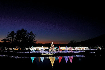 ガーデンモール前の芝生のひろばの湖畔が約10万個の電球でライトアップされます。