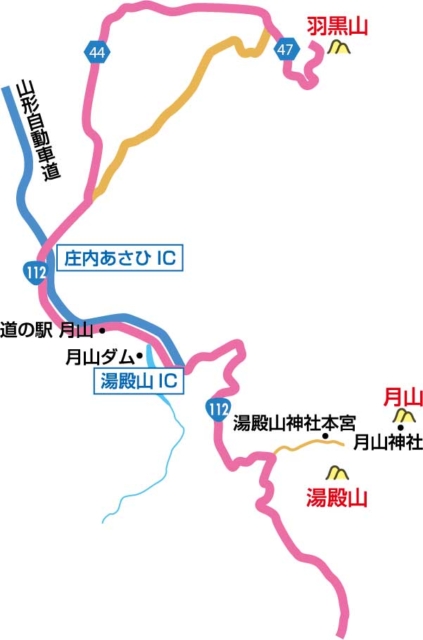 - 山形自動車道湯殿山ICから国道112号を山形方面へ車で14km