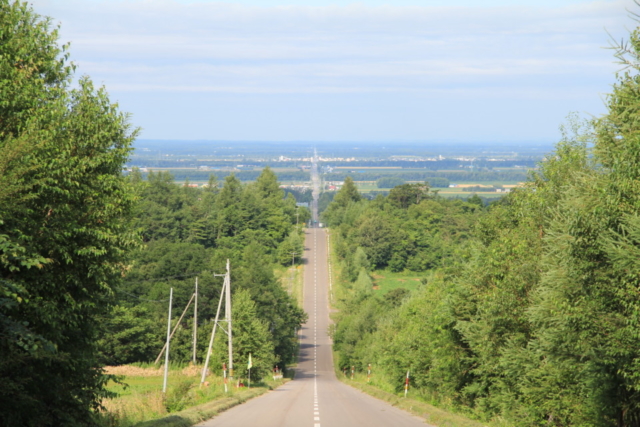 反対側のウトロ方面へ続く道。周囲が畑に囲まれた道東らしい風景が続き、 車で走っていると気持ちが良い。