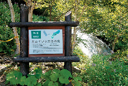 登り口から一の滝までは約100m。ここより上流には登らないこと