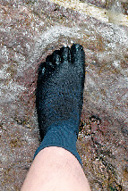 湯が流れる岩肌を歩く。滑り止め付きの靴下の効果は絶大!