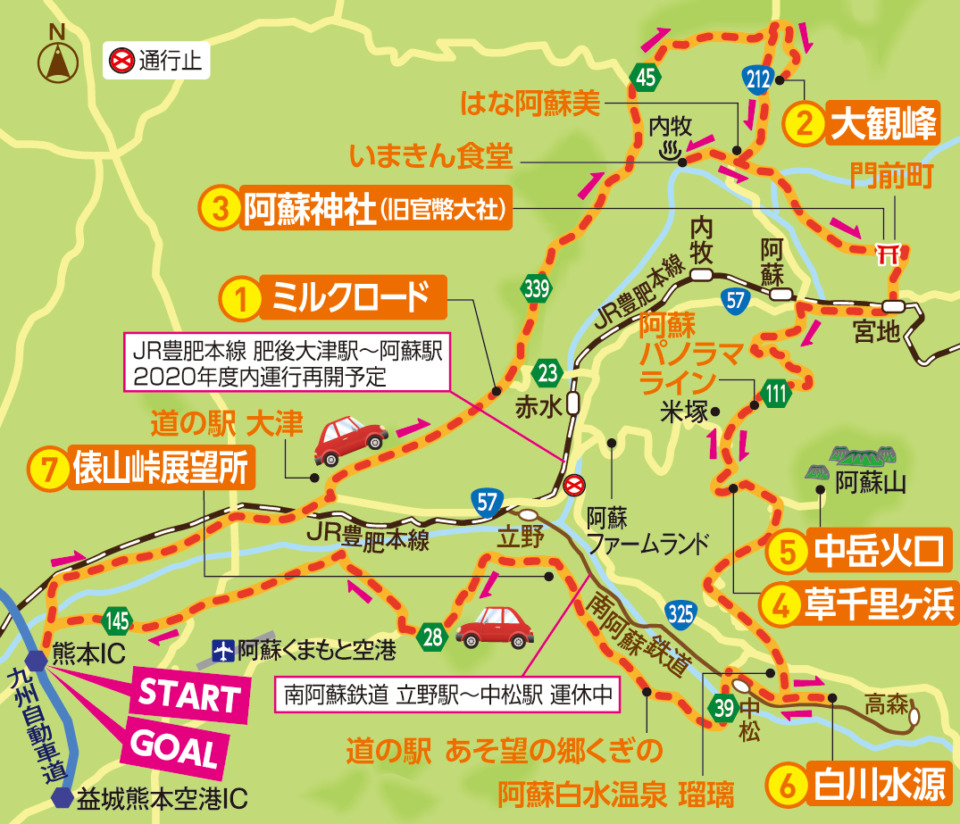 阿蘇の絶景をあますところなくめぐることができる、イチオシのモデルコースをご紹介します。