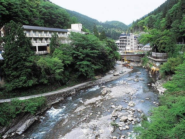 川沿いに温泉宿が並ぶ。清流のせせらぎを聞きながら湯につかりたい
