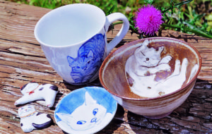 - 湯呑み=2000円~/伊万里焼人形耳かき=1570円/マグネット=500~600円/コーヒー=500円/ビーフカレー(サラダ付)=800円/