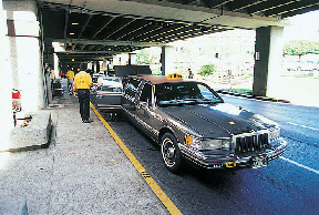空港からオアフ島内の希望の場所まで運んでくれる乗り合いのシャトルバン。
