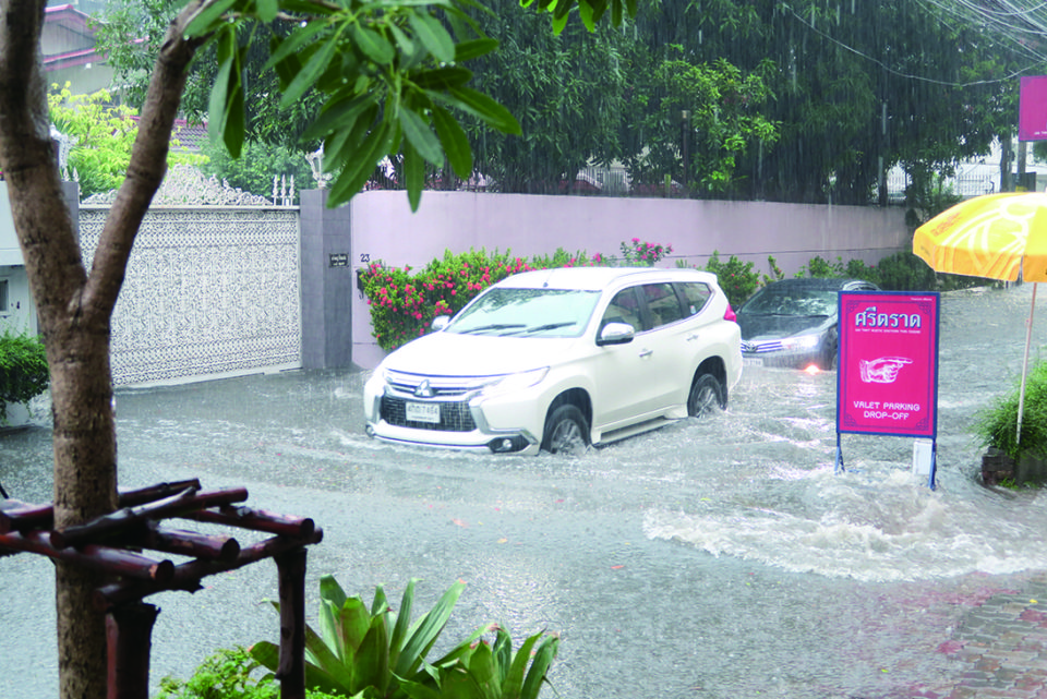 スコールで道路が冠水したら、もはや諦めるしかありません。そんなときはのんびりお茶でも飲みながら水が引くのを待ちましょう。