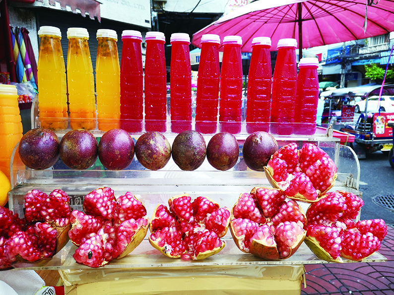 ジュース屋台を見かけたら即買い。ザクロやパッションフルーツなどをその場で搾ってくれる100%ジュースが気軽に飲めるなんて、本当に天国です。