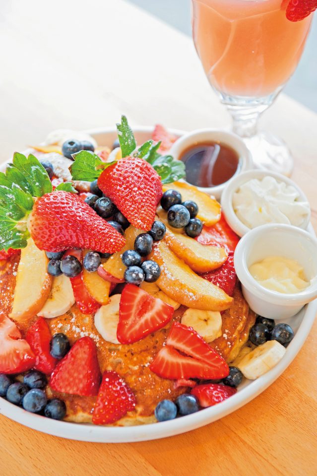 ボリューム満点のオムレツやパンケーキが人気。フルーツたっぷりのアサイボウルもファンが多い。大盛りなので、シェアして食べよう。