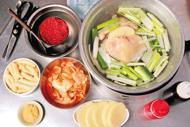 「鶏一羽」という意味のタッカンマリの店が10軒近く密集している。