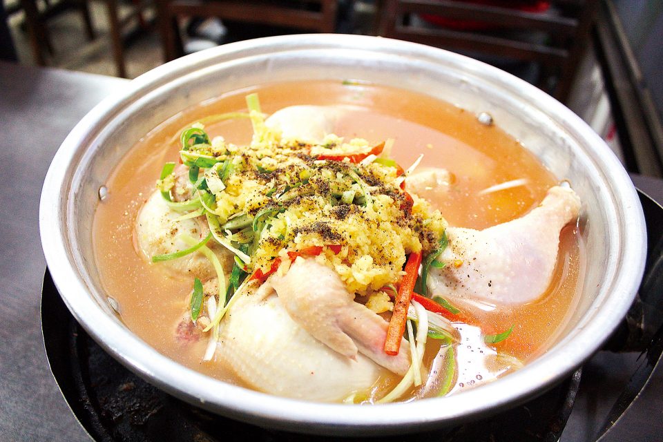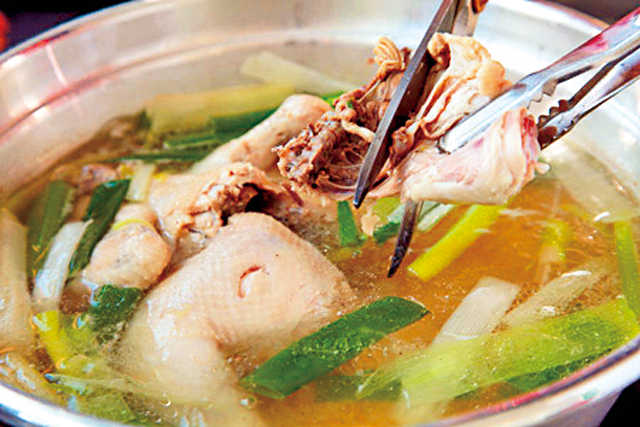 鶏を丸ごと煮込む豪快な鍋料理。コラーゲンたっぷりで超美味。