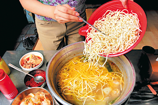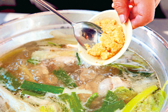 ニンニク、トウガラシペーストなどでスープを味付け。好みにより味付けしなくてもOK。