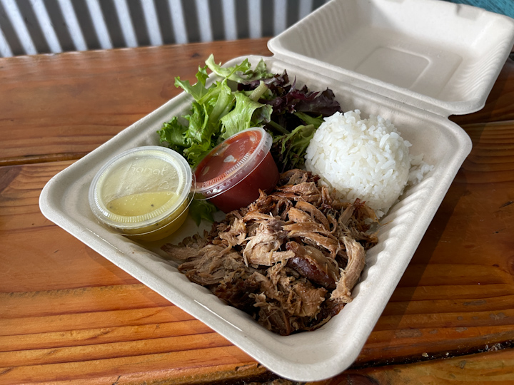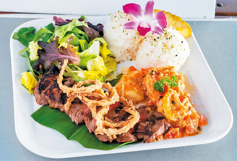 プレートランチとは、おかずにご飯やサラダなどの一食分の料理を一枚のお皿に盛りつけた、ハワイの定番ランチスタイルのこと。日本のお弁当のように、テイクアウトをして屋外で食事を楽しむ方も多いです。
