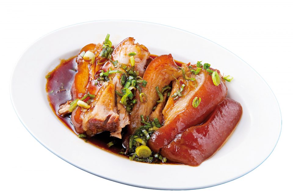 食事どきは行列を成し、すぐ満席になる人気店。太もも、すね、足先と3種の部位を選べ、いずれも秘伝の甘辛いたれで約4時間かけて煮込まれている。