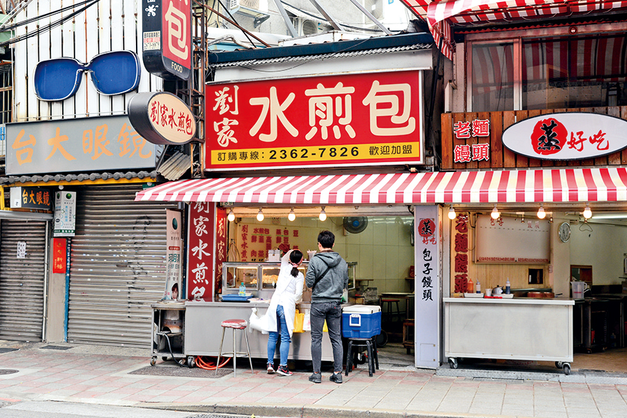 公館で30年以上愛される水煎包の人気店。春雨とにらがたっぷり入った韮菜と、豚肉とキャベツ入りの高麗菜の2種類があり、どちらも香ばしい羽根付き。散策のお供に、買い求めたい。