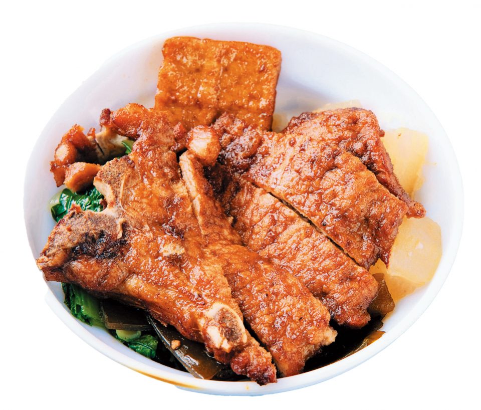 名物は排骨飯と蝦捲。とくに排骨飯は豚のあばら肉を10種類の漢方と醤油、にんにくなどが入った特製たれに一晩漬け込んでから揚げたこだわりの一品。
