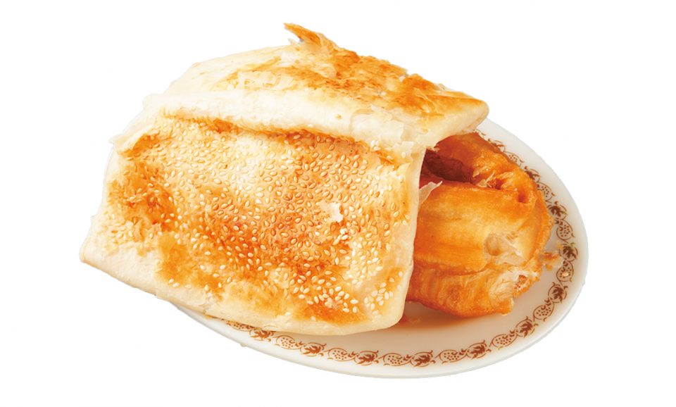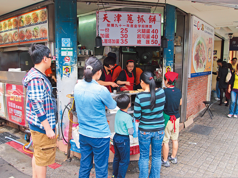 自家製のたれで食べる葱餅の専門店。ねぎ入りの生地を平たく焼いたあとに、ヘラでバシバシ叩くようにして空気を入れるので、軽い食感に仕上がる。卵入りの加蛋40元がおすすめ。