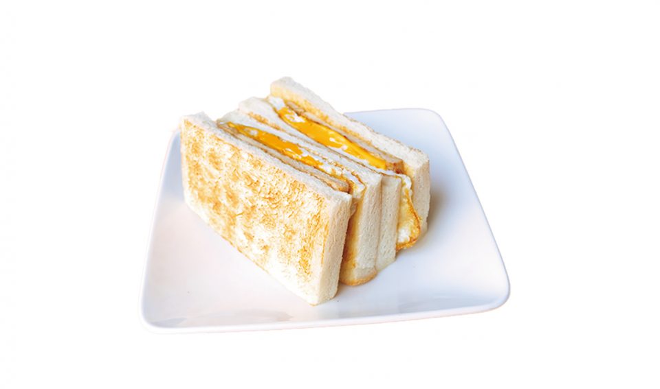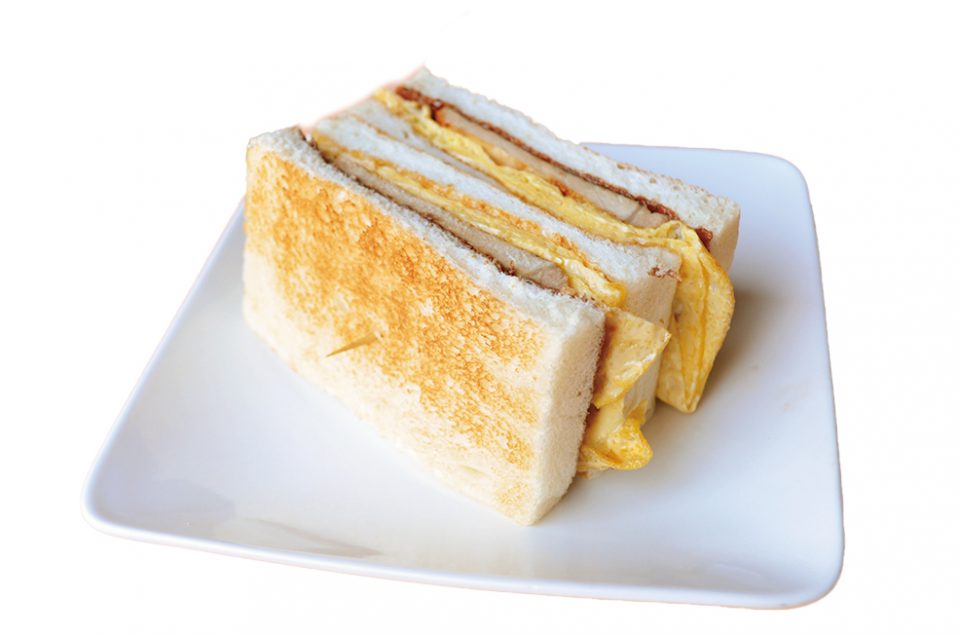 チーズ、豚肉、玉子のトーストサンドは定番メニュー。起士肉蛋吐司(チーシーロウダントゥスー)75元