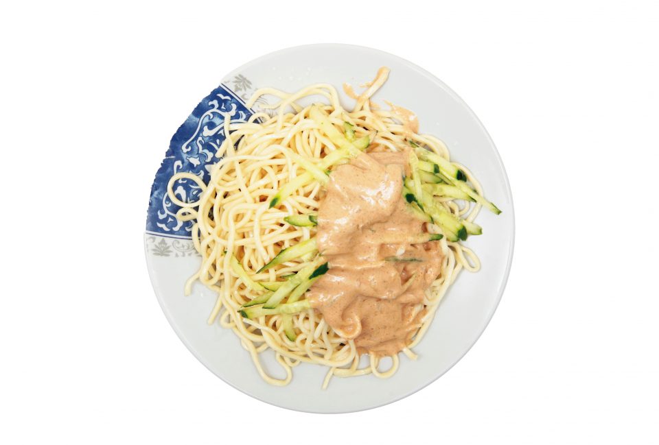 香ばしいごまだれが、弾力のあるモチモチ麺とよく合う、シンプルな一皿。涼麺(リャンミエン)大55元、小50元
