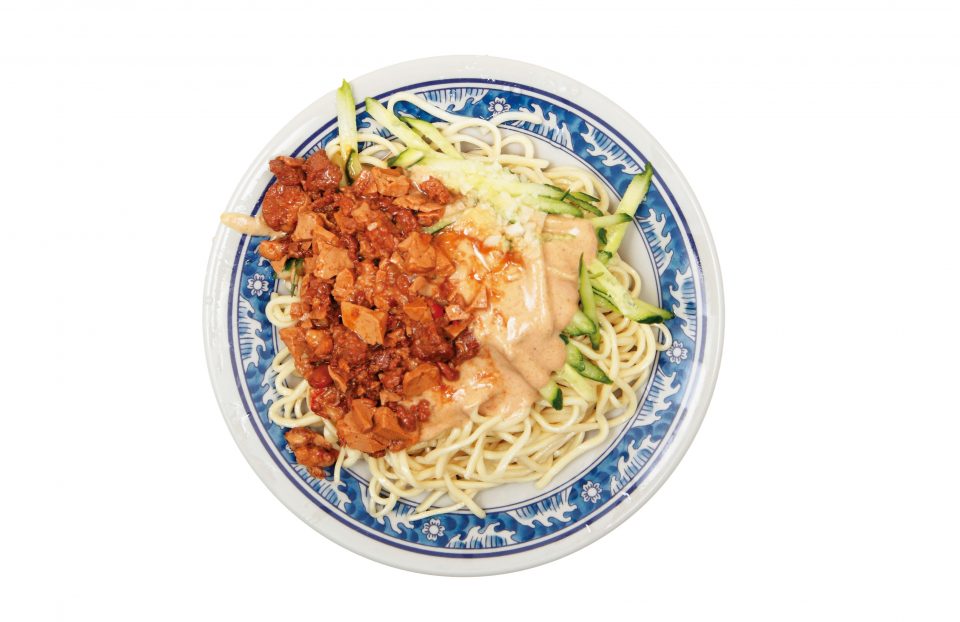 甘辛い肉味噌とさっぱりしたきゅうりで箸がどんどんすすむ、店のいち押しメニュー。炸醤涼麺(ツァーチャンリャンミエン)大65元、小60元