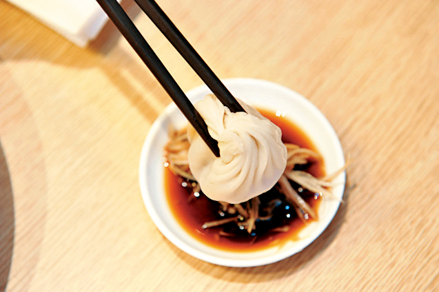 スープにしっかりとうまみがあるので、そのままでもおいしくいただける。蘇杭小籠包(スウハンシャオロンパオ)140元(8個)
