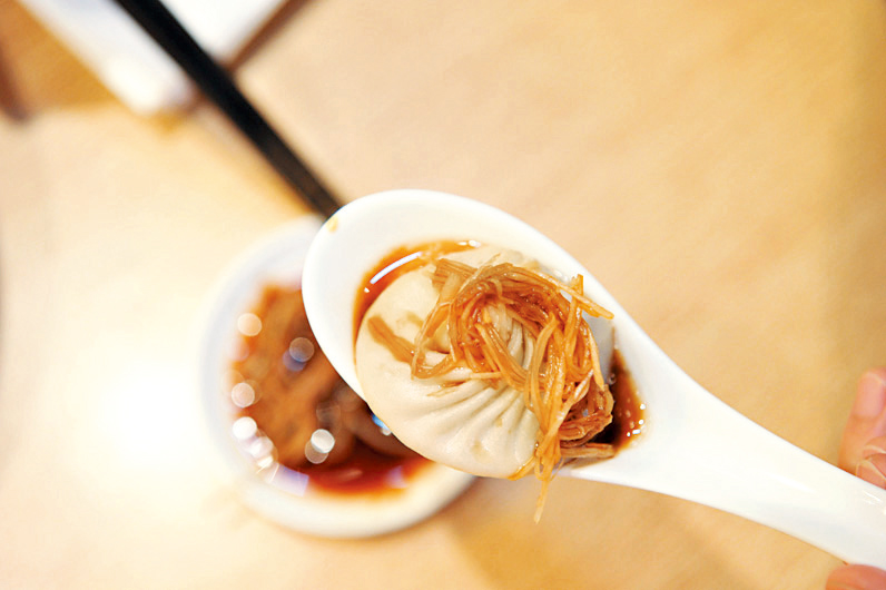 もともと人気の看板メニューだが、さらに改良が加えられ、肉汁と肉らしい食感が増した。小籠包(シャオロンパオ)230元(10個)