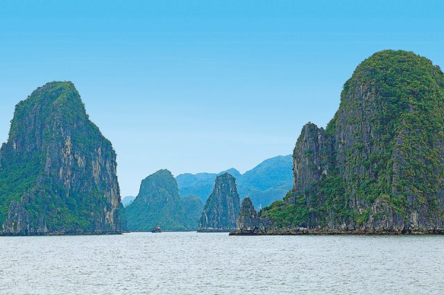 ぶ湾に1969もの石灰岩の島が浮かび、「空から舞い降りた龍が、敵の侵攻を防ぐために口からはき出した玉が岩に姿を変えた」という伝説が残る場所。地名はハ(降りる)ロン(龍)を意味しています。
