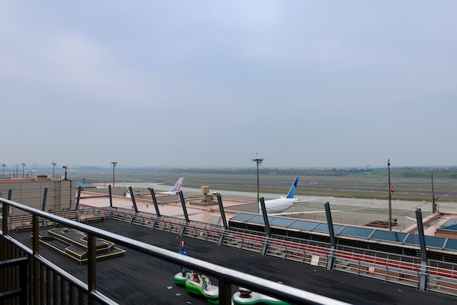 飛行機ファンにはたまらない、滑走路を見渡すことができる展望デッキ。タイミングが合えば、飛行機の離着陸を見ることができる。