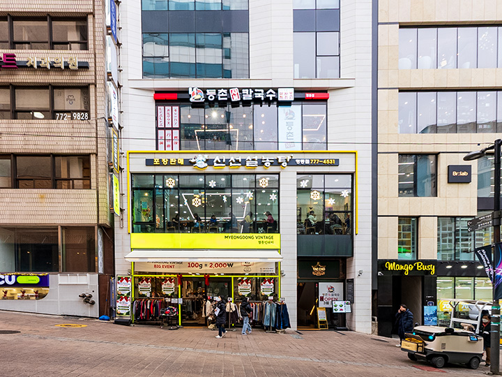 神仙ソルロンタン 明洞店に到着。2020年に一度閉店しましたが、2023年5月に同じ場所で再オープン。外観からもきれいなお店ということがわかります。