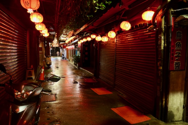 夜の最終バスの後や、早朝のお店の開店前の時間などは、ほとんど人が歩いていない静かな九份が楽しめます。シャッターが閉まって静まりかえった夜の基山街は、まさに千と千尋の神隠しの冒頭シーンの怪しげな雰囲気が漂います。ただし、夢中になってあまりにも細い路地などには入って行かないように注意しましょう。