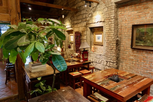 100年以上の歴史がある建物を利用した茶藝館で、独特の雰囲気が漂います。店内には水が流れ、コイが泳ぐ池もあって、まるでジブリ作品のようなファンタジー世界に迷い込んだかのようです。