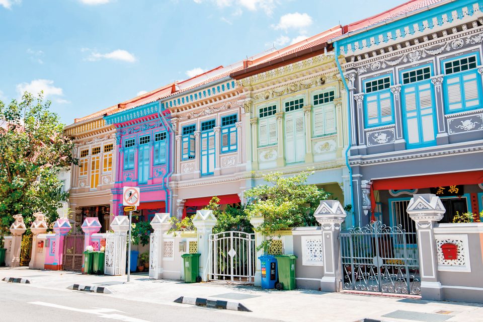 シンガポール中心部の東側にあるカトンは、マレー半島生まれの中国系移民の子孫・プラナカンの家々が並ぶ、魅力的な街。なかでもパステルカラーの家々が並ぶクーン・セン・ロードは有数の写真スポット。花柄タイルや、レースのような軒下飾りがかわいらしく、とてもフォトジェニック。イースト・コースト通りに並ぶ、有名なプラナカン料理店での食事と合わせて、街歩きを楽しみたい。