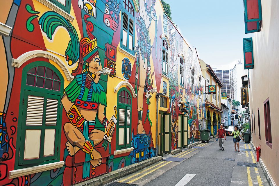 アラブ・ストリートのお隣、ハジ・レーンは壁画が話題のアートな路地。おしゃれなショップ&カフェが立ち並び、世界各国から観光客が訪れる人気スポットになっている。
