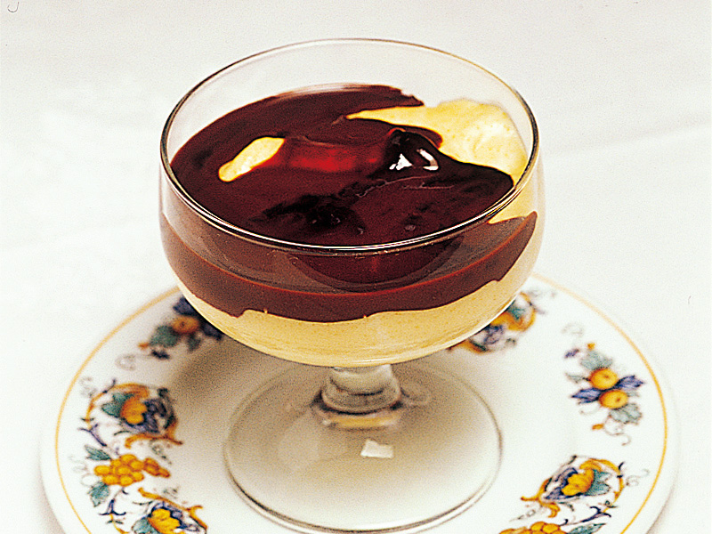 卵黄に砂糖とマルサラ酒を加えて泡立て、冷やし固めたクリームソース。フルーツやケーキに添えられることも。ピエモンテ州の名物です。