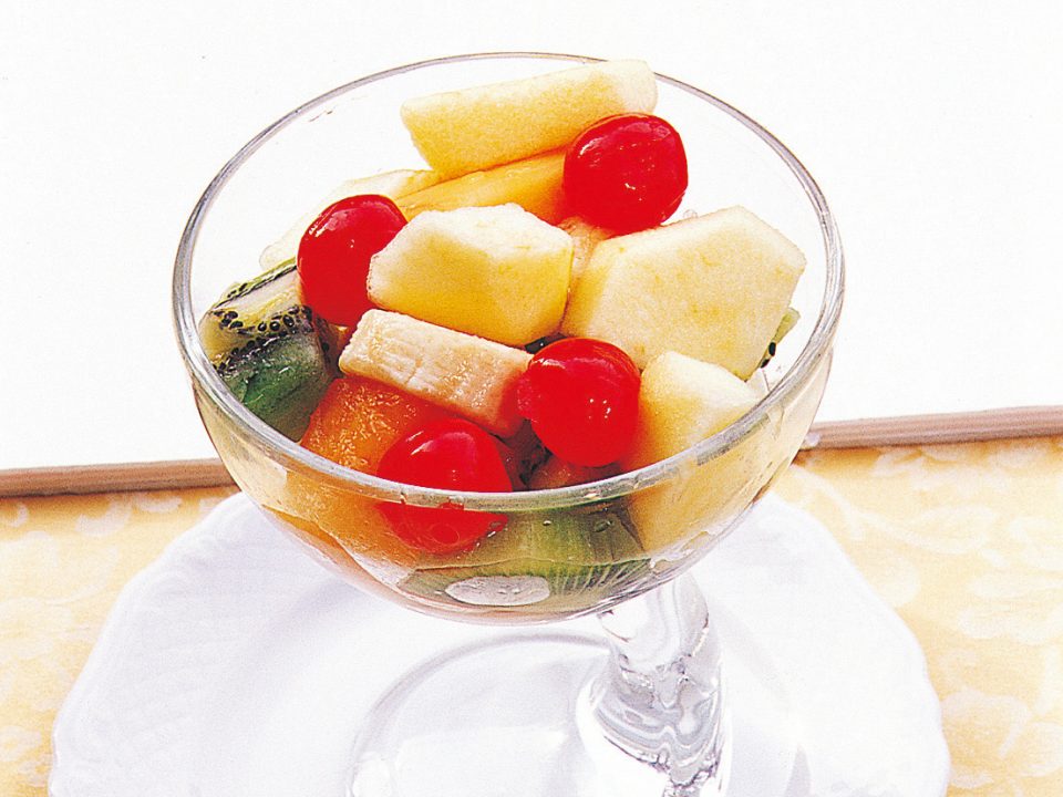 小さくカットしたフルーツを、白ワインや紅茶入りシロップに漬け込んだイタリア風のフルーツポンチ。見た目もカラフルで可愛いです。