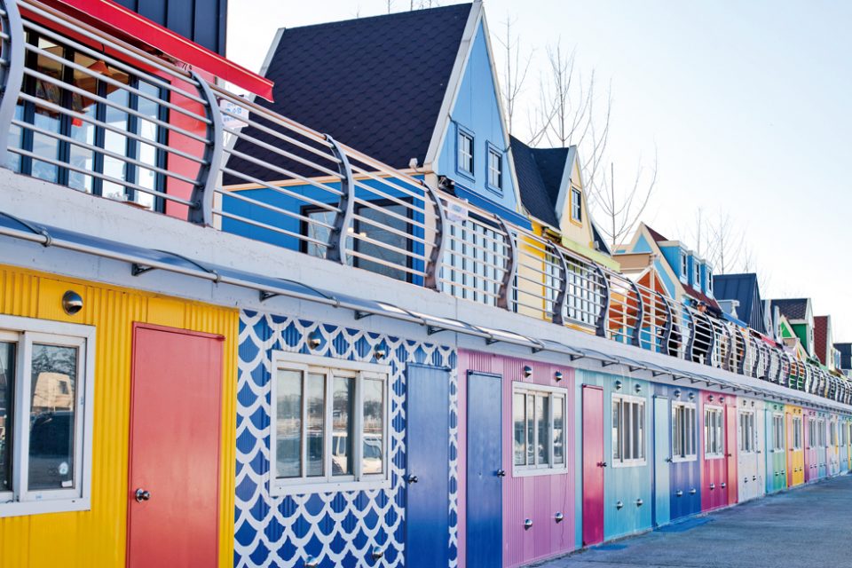 かわいい小さな家はそれぞれカフェやオデン屋になっている